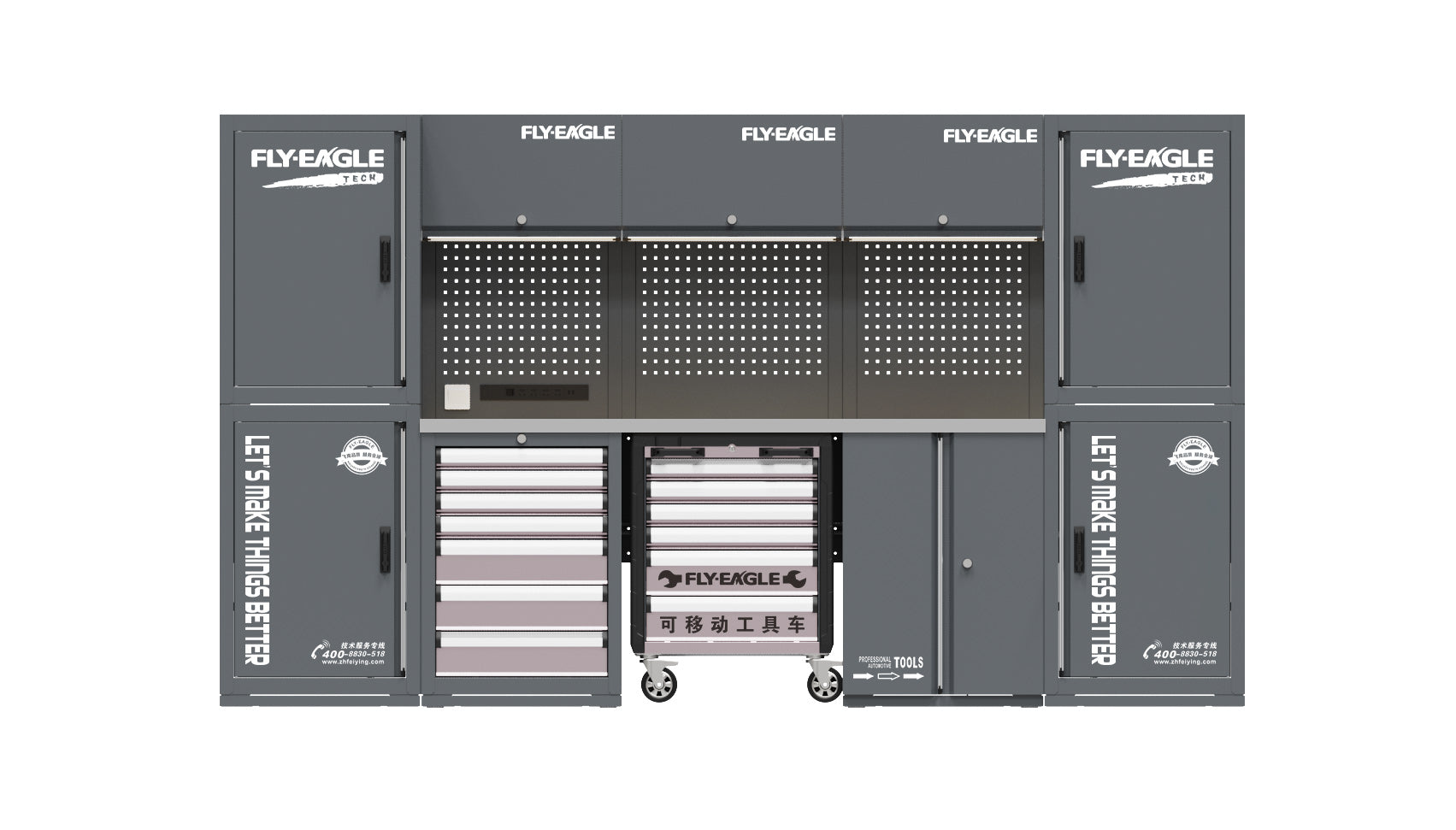 This high-durability storage cabinet system is designed for demanding workshop environments. Its reinforced structure and premium powder-coated finish protect the cabinets from daily heavy use while ensuring long-lasting performance and a clean, professional appearance.